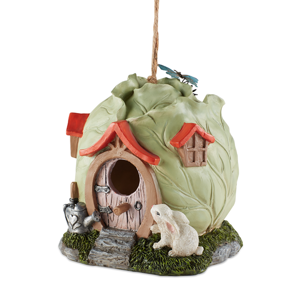 This fun and unique birdhouse is the perfect way to turn your backyard into a birdwatching sanctuary. The cabbage head cottage whimsical birdhouse has a small hole in the front for birds to enter and is made of polyresin that will weather nicely over time.