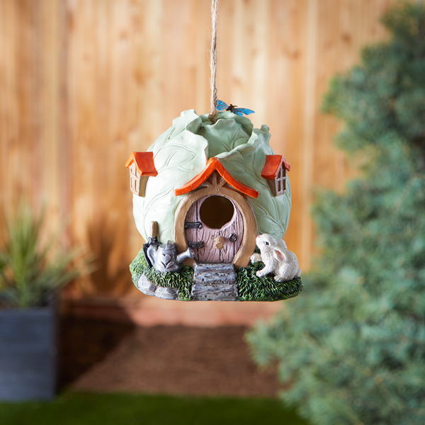 • This adorable cabbage head birdhouse adds colorful charm to your outdoor space and provides a delightful home for your garden birds. To clean your garden birdhouse, wipe it with a clean, dry cloth. The birdhouse base has a plug that opens for easy cleaning.