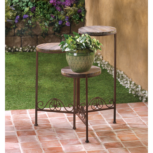 This Rustic Triple planter stand is perfect for showing off your green thumb. Its three shelves can accommodate a wide variety of plants and flowers, adding a touch of nature to any room. The rustic finish gives it a classic look that will complement any décor. The rustic design adds a touch of charm to any space, and the sturdy construction ensures that your plants will be safe and secure.