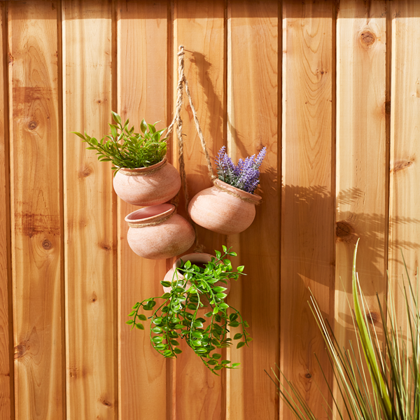 These lovely white-wash terracotta tone vessels with jute hanging planters add a touch of green to your home decor. These pots are ideal for displaying small succulents or roses and bringing nature inside. The elegant white-wash finish complements any indoor decor, and the long-lasting terracotta quality material ensures that your herbs thrive. Their simple installation makes these white wash terra cotta pots ideal for displaying your green thumb.
